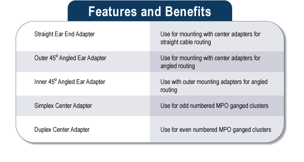 Amphenol的可堆疊適配器系統可與所有符合IEC 61754-20和TIA / EIA 604-10的行業標準LC連接器以及符合IEC 61754-7和TIA / EIA 604-5的行業標準MPO連接器系統一起使用,包括MTP®品牌的連接器。